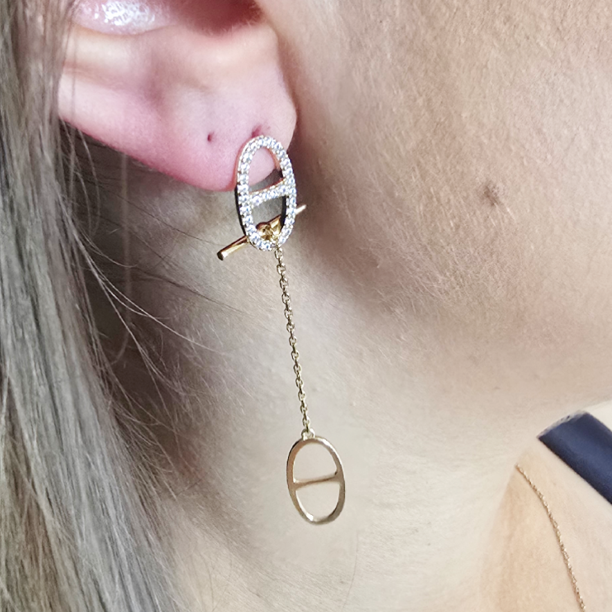 Élégantes et légères, ces boucles d’oreilles dorées allient strass scintillant et graines de café dorées. Une chaîne verticale relie subtilement la base à l’extrémité, créant un mouvement délicat et raffiné. Parfaites pour sublimer vos tenues avec style et originalité.